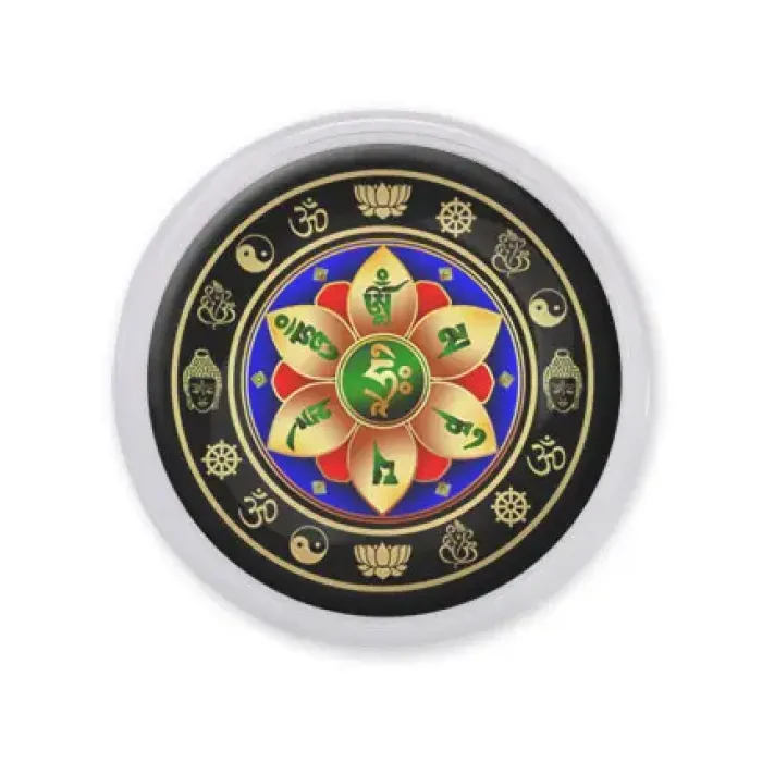 Акриловый магнит для крепления на металлическую поверхность с изображением мантры «Ом Мани Падме Хум».