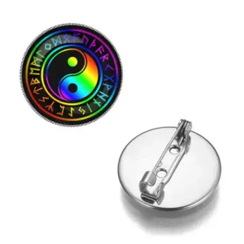 Значок Инь-Ян из бижутерного сплава с изображением, защищённым выпуклой стеклянной линзой.