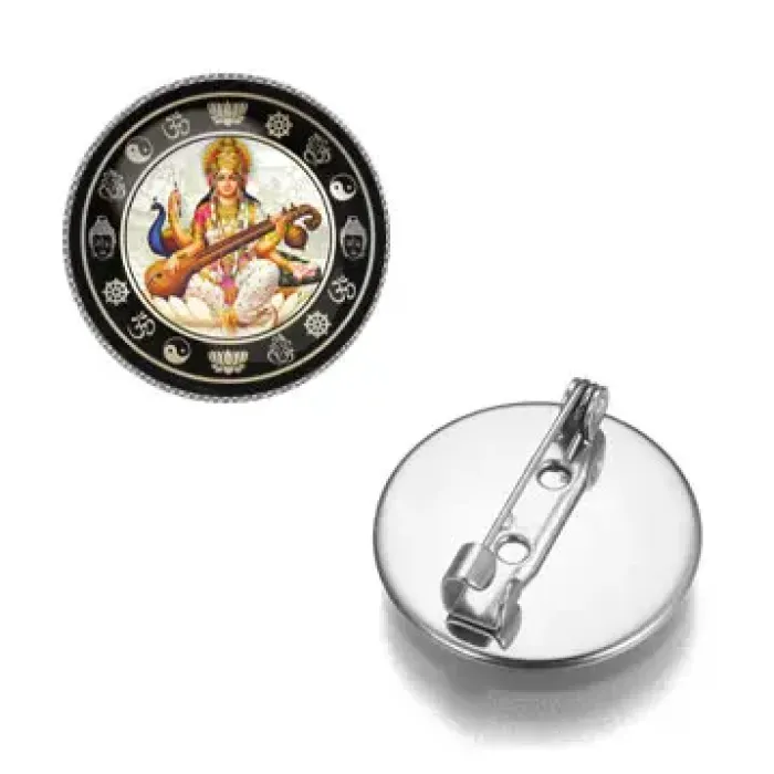 Значок Сарасвати — это стильный аксессуар, который сочетает в себе элегантность и символику. Изготовленный из бижутерного сплава с покрытием под серебро, он станет прекрасным дополнением к любому наряду. Диаметр значка составляет 26 мм, а изображение защищено выпуклой стеклянной линзой, что придаёт ему особую выразительность. Упакован в прозрачный пакет, он идеально подходит как для личного использования, так и в качестве подарка. Значок традиционно ассоциируется с мудростью и знанием, что делает его не только красивым аксессуаром, но и символом глубоких ценностей.