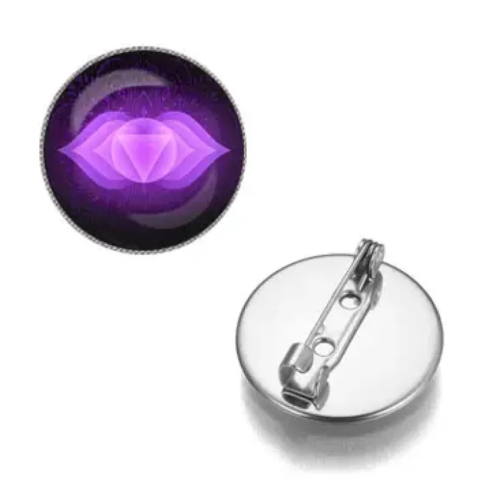 Сувенирный значок Аджна чакра из бижутерного сплава с выпуклым стеклянным покрытием.