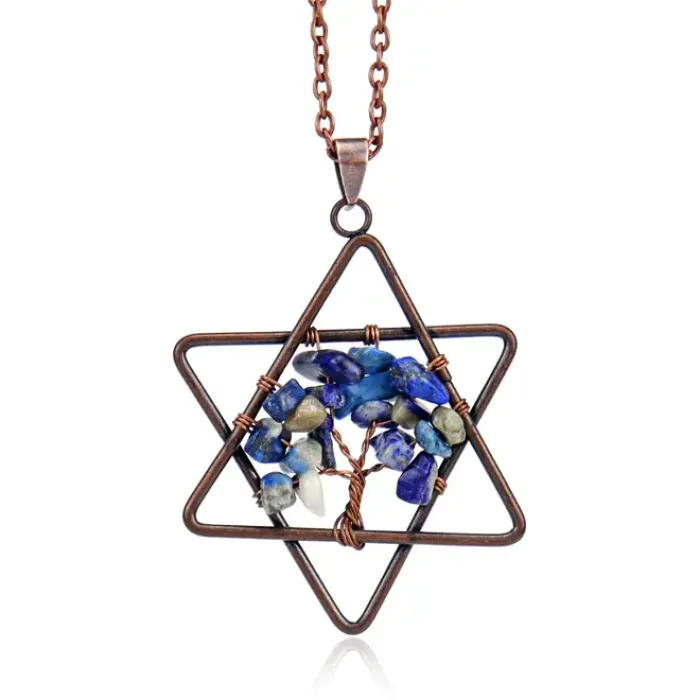 Кулон «Звезда Давида и Дерево Жизни» из металла с покрытием под медь и натурального камня содалита.