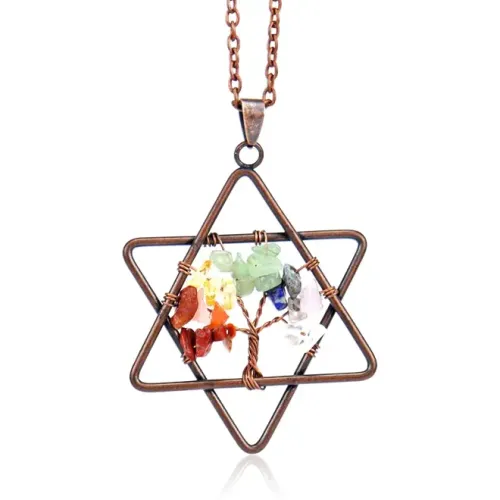 Кулон с символами Звезды Давида и Дерева Жизни из металла с покрытием под медь и натурального агата.