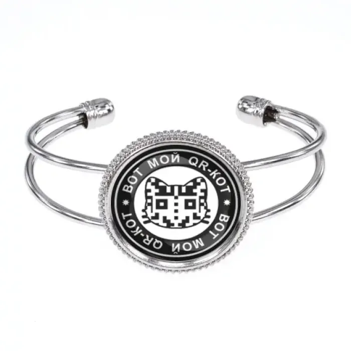 Браслет с QR-кодом, выполненный из бижутерного сплава со стеклянной линзой.