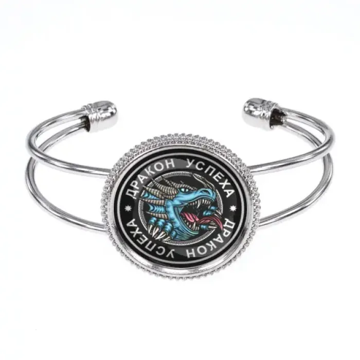 Браслет Дракон Успеха — это не просто украшение, но и символ удачи и процветания. Изготовленный из бижутерного сплава с покрытием под серебро, он прекрасно дополняется стеклянным элементом диаметром 25 мм, защищённым выпуклой линзой. Этот браслет станет отличным подарком для тех, кто верит в силу символики дракона как покровителя успеха. Открытая форма делает его универсальным аксессуаром для любого запястья. Каждое изделие упаковано в прозрачный пакет, что добавляет удобства при дарении или хранении.