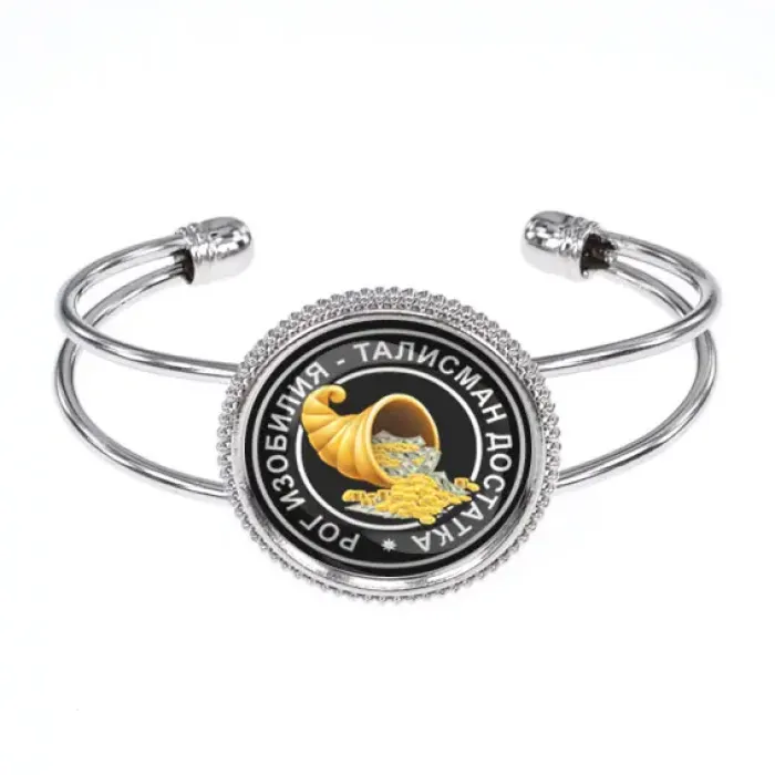 Размеры и комплектация: Диаметр изображения 25 мм, открытая форма браслета. Упаковка: прозрачный пакет.