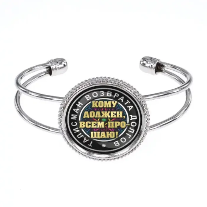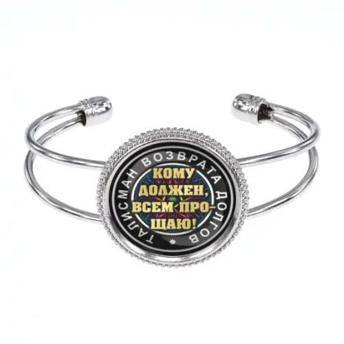 Браслет-талисман из бижутерного сплава с изображением под выпуклой стеклянной линзой.