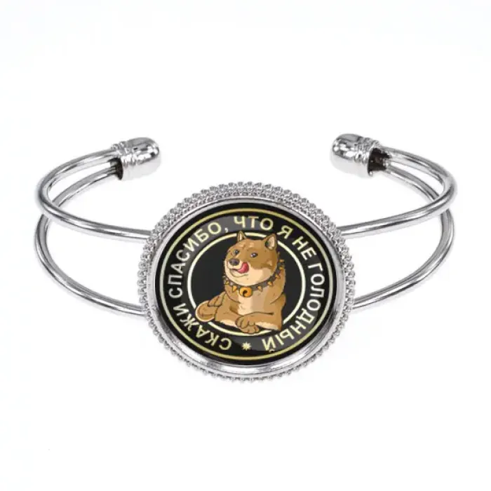 Браслет из бижутерного сплава с изображением под выпуклой стеклянной линзой.