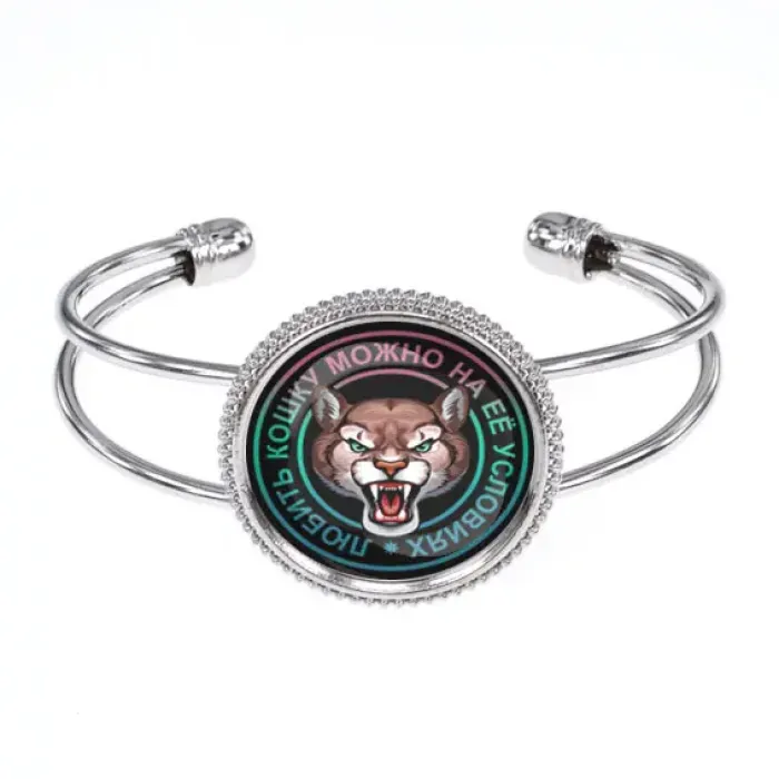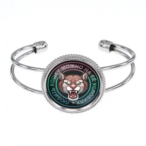 Браслет "Любить кошку" — это стильный аксессуар, который станет прекрасным подарком для любителей домашних питомцев. Этот уникальный браслет выполнен из бижутерного сплава с покрытием под серебро и украшен изображением диаметром 25 мм, защищённым выпуклой стеклянной линзой.