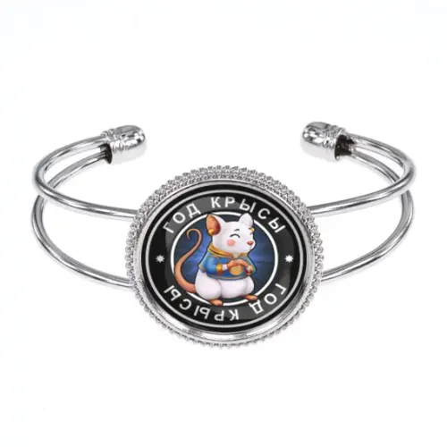 Браслет Восточный гороскоп - год Крысы является стильным аксессуаром, который символизирует удачу и благополучие. Изготовленный из бижутерного сплава с покрытием под серебро и стекла, этот браслет станет отличным дополнением к любому образу.
