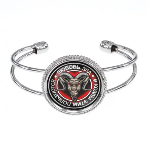 Браслет "Любовь зла" — это стильный аксессуар, который станет прекрасным дополнением любого образа. Он выполнен из бижутерного сплава с покрытием под серебро и украшен стеклянным изображением диаметром 25 мм, защищенным выпуклой линзой. Открытая форма браслета делает его универсальным и подходящим для любого запястья. Упакован в прозрачный пакет, что позволяет использовать его как оригинальный подарок. Этот браслет символизирует любовь и страсть, добавляя нотку романтики в повседневную жизнь.