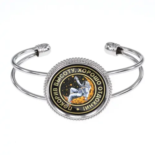 Браслет Покорителю высот — это стильный аксессуар, который символизирует стремление к новым вершинам и достижениям. Изготовленный из бижутерного сплава с покрытием под серебро и дополненный стеклянным изображением диаметром 25 мм, защищённым выпуклой линзой, он станет ярким акцентом в любом образе.