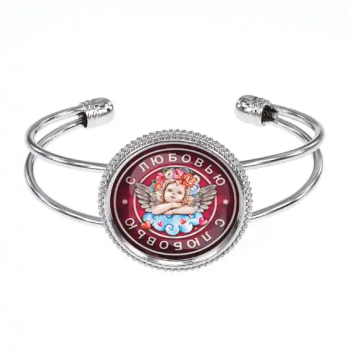 Браслет С любовью BSCP-0154 — это стильный аксессуар, который станет прекрасным подарком для близких. Изготовленный из бижутерного сплава с покрытием под серебро и стекла, он сочетает в себе элегантность и оригинальность. Основное изображение диаметром 25 мм защищено выпуклой стеклянной линзой, что придаёт ему дополнительную выразительность. Упаковка в прозрачный пакет делает его идеальным для подарка. Открытая форма браслета позволяет носить его без ограничений по размеру.