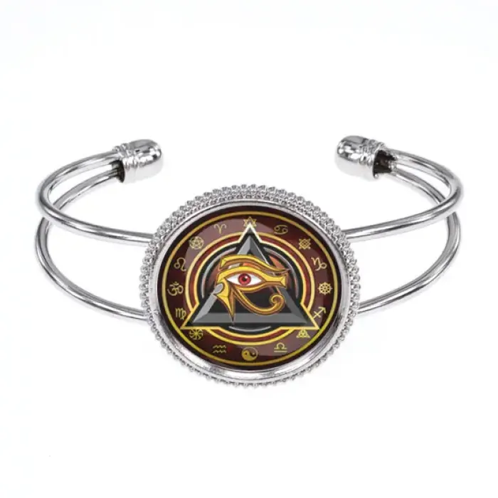Браслет из бижутерного сплава с изображением Око Ра под выпуклой стеклянной линзой.
