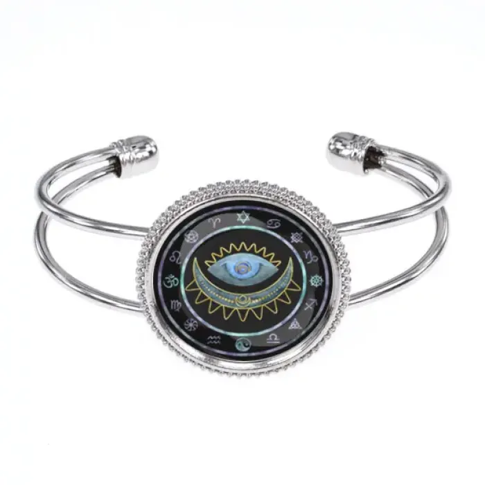 Браслет Глаз Ночи — это стильный аксессуар, который сочетает в себе красоту и символизм. Изготовленный из бижутерного сплава с покрытием под серебро и стекла, он привлекает внимание своим уникальным дизайном. Изображение диаметром 25 мм защищено выпуклой стеклянной линзой, что придаёт изделию особую выразительность. Браслет выполнен в открытом (безразмерном) формате, что позволяет носить его с комфортом на любом запястье. Упакован в прозрачный пакет, он станет отличным подарком для ценителей оригинальных украшений и символов защиты от негативной энергии.