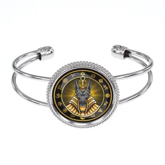 Браслет с изображением Анубиса. Изготовлен из бижутерного сплава со стеклянным элементом.