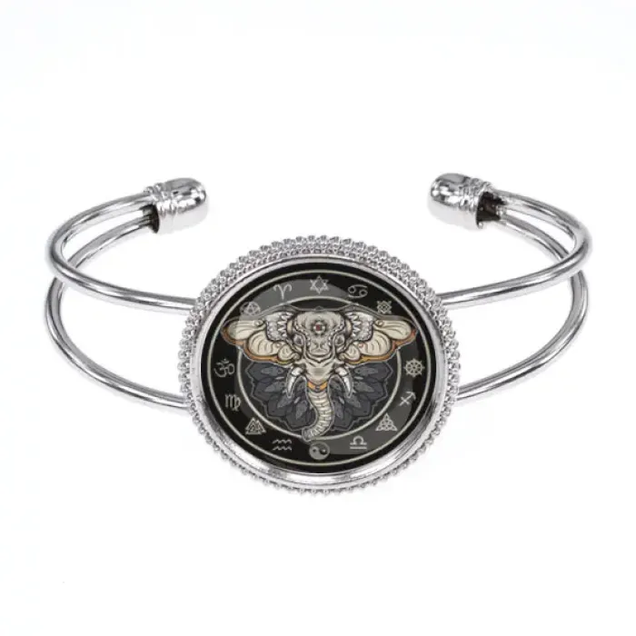 Браслет из бижутерного сплава с изображением слона под выпуклой стеклянной линзой.