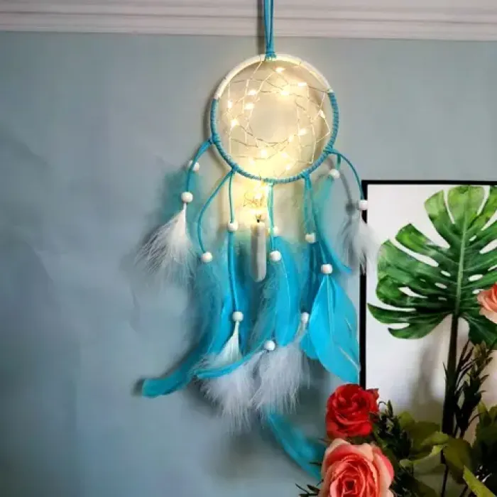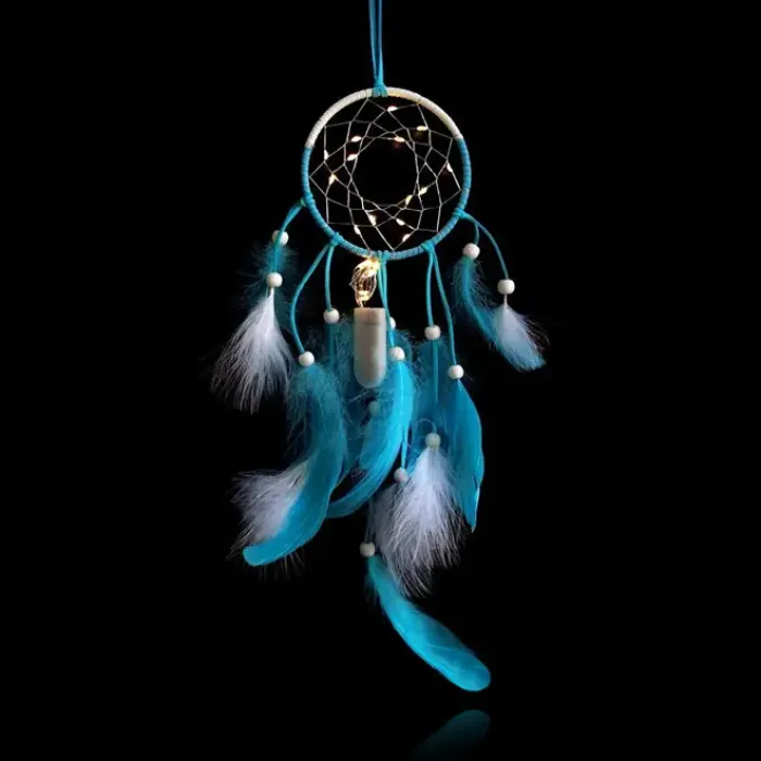 Подвеска для интерьера в виде ловца снов со светодиодной подсветкой, цвет голубой.