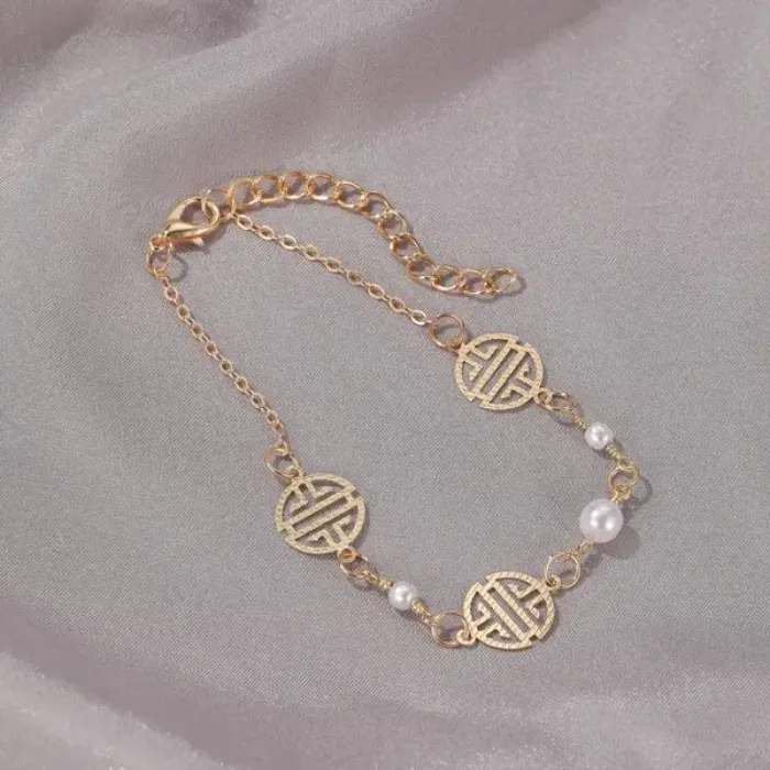 Элегантный браслет с искусственным жемчугом — это стильный аксессуар, который добавит изысканности любому образу. Изготовленный из бижутерного сплава и покрытый золотым слоем, он выглядит как настоящее ювелирное изделие.