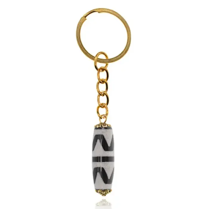 Брелок с бусиной Дзи Двойной клык тигра DZBK-014