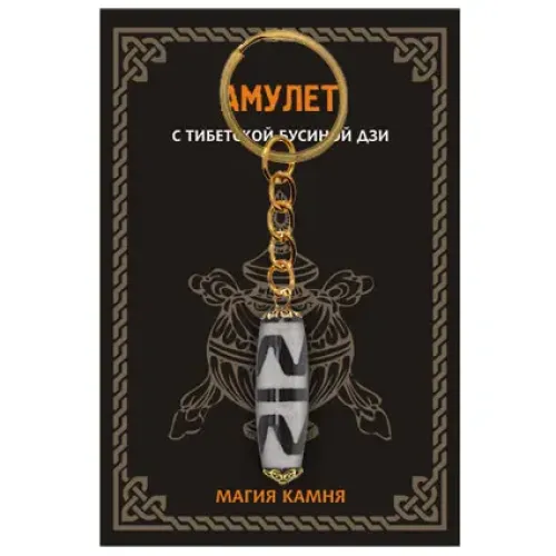 Брелок с бусиной Дзи. Материал — натуральный агат. Дизайн — бусина с символом «Двойной клык тигра».