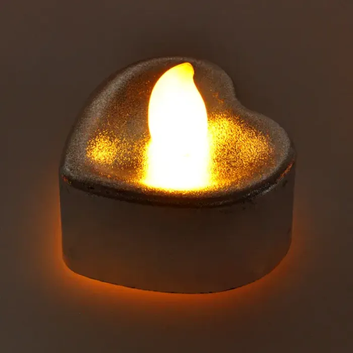 Светодиодная свеча Сердце, 4х4х2см, цвет серебряный