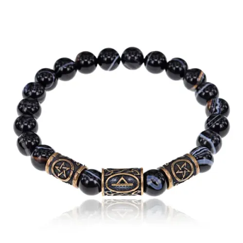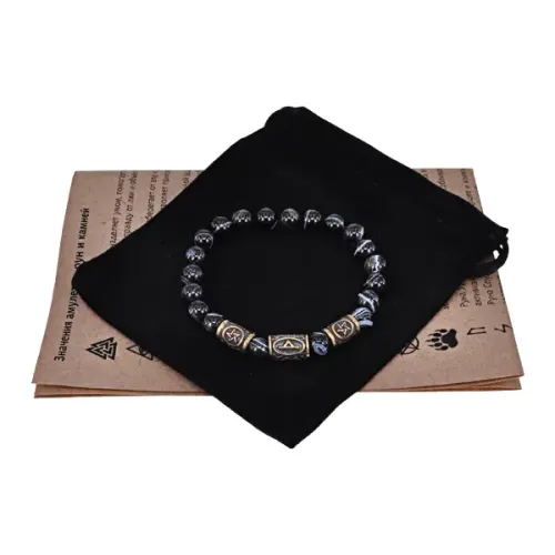 Чёрный агат ценится за свою способность приносить финансовый успех и гармонию в личную жизнь. Руна Турисаз добавляет уверенности владельцу, помогая успешно завершать дела и защищая от недоброжелателей. Этот браслет станет не только стильным дополнением к образу, но и надежным оберегом в повседневной жизни.