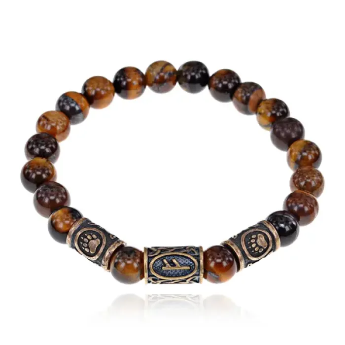 Рунический стрейч-браслет-амулет из натурального камня тигровый глаз с металлическими бусинами.