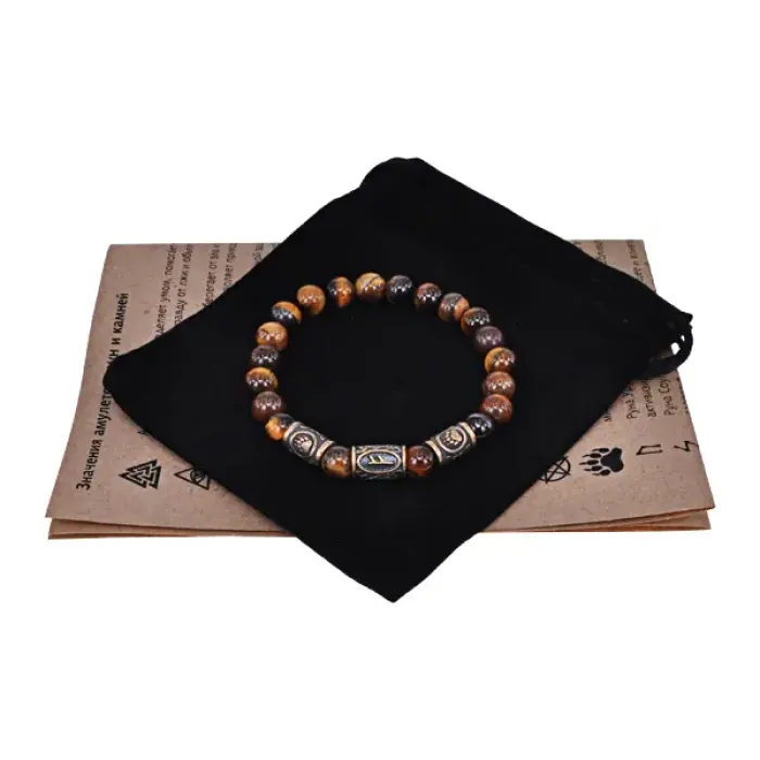 Рунический браслет - амулет Достаток и богатство с нат.камнем Тигровый глаз BSRA-210