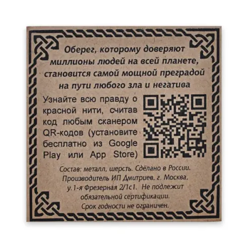 - В комплект входит вкладыш с описанием, который расскажет о значении оберега.
