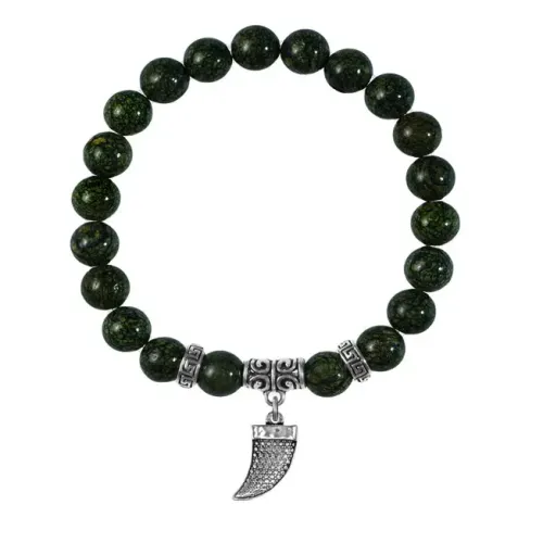 Браслет-амулет из натурального камня змеевик с подвеской из бижутерного сплава.