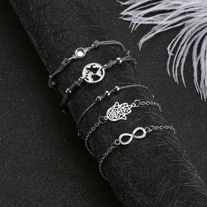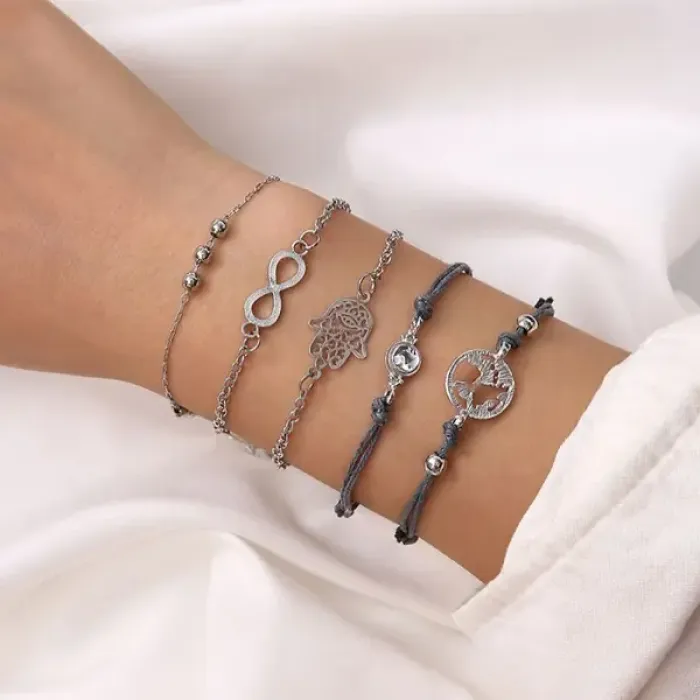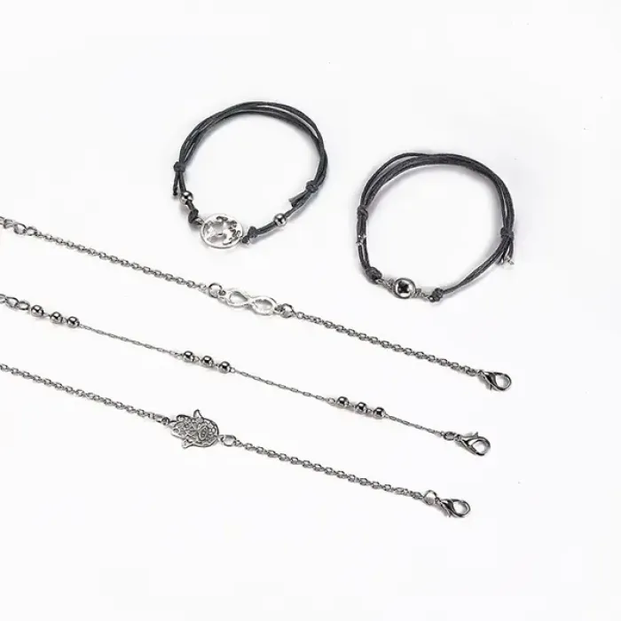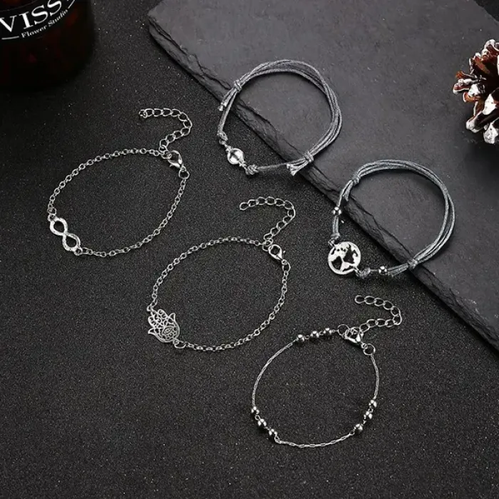 Набор из 5 браслетов, цвет серебряный BSN031