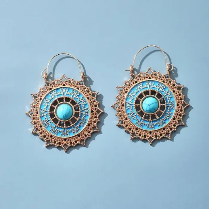 Материал и изготовление: Бижутерный сплав, покрытие под золото, вставки из синтетической бирюзы.