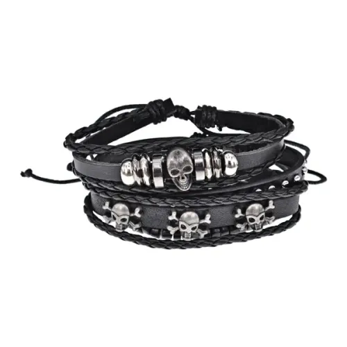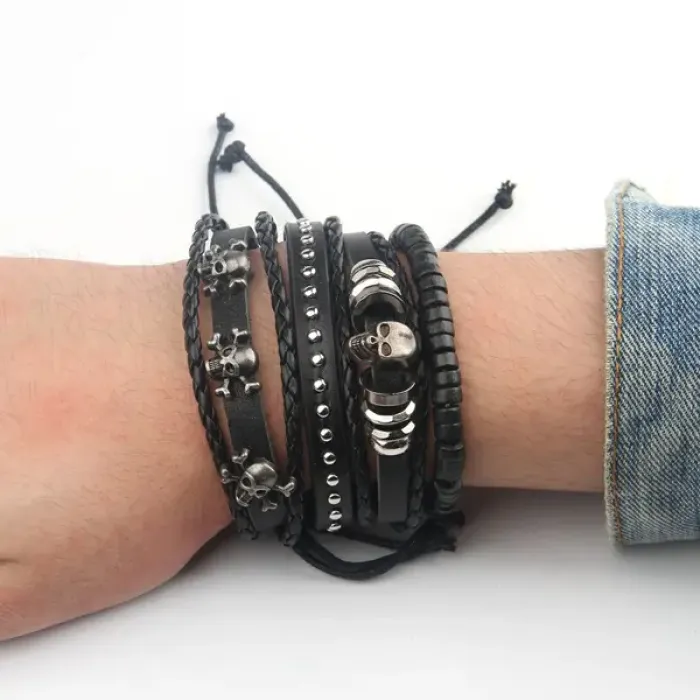 Набор из 4 кожаных браслетов, цвет черный BSN028