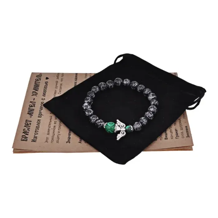 Браслет Ангел-хранитель, обсидиан и малахит BSAH013