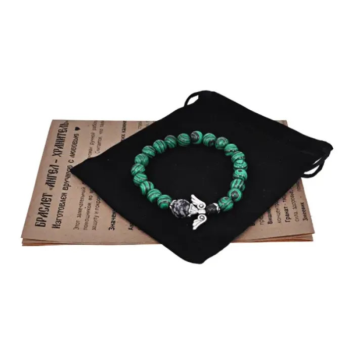 Браслет Ангел-хранитель — это стильный стрейч-браслет, выполненный из синтетического малахита и натурального обсидиана. Этот аксессуар не только красив, но и наполнен глубоким символическим смыслом. Малахит традиционно ценится за свою способность открывать сердце для безусловной любви и оберегать от дурного глаза. Он станет надежным талисманом для творческих людей, артистов и ораторов, помогая преодолевать робость.