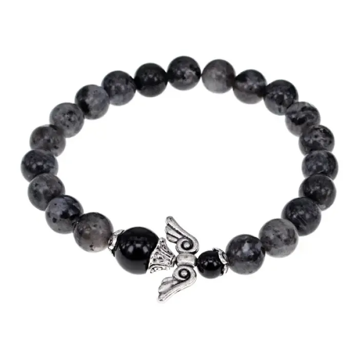 Браслет Ангел-хранитель, лабрадор и черный агат BSAH016