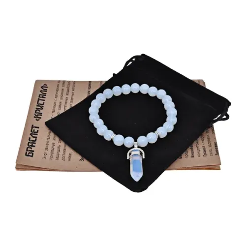 Стрейч-браслет с кристаллом из синтетического лунного камня диаметром 8 мм.