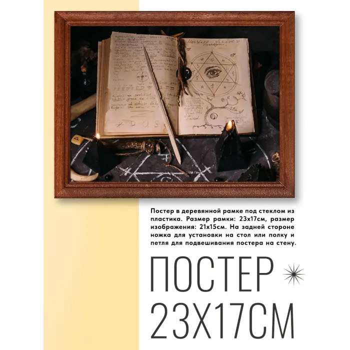 Постер в рамке «Книга заклинаний» — это стильный элемент декора, который добавит уникальности любому пространству. Он идеально подходит для оформления салонов, магазинов, офисов, кафе и жилых помещений.