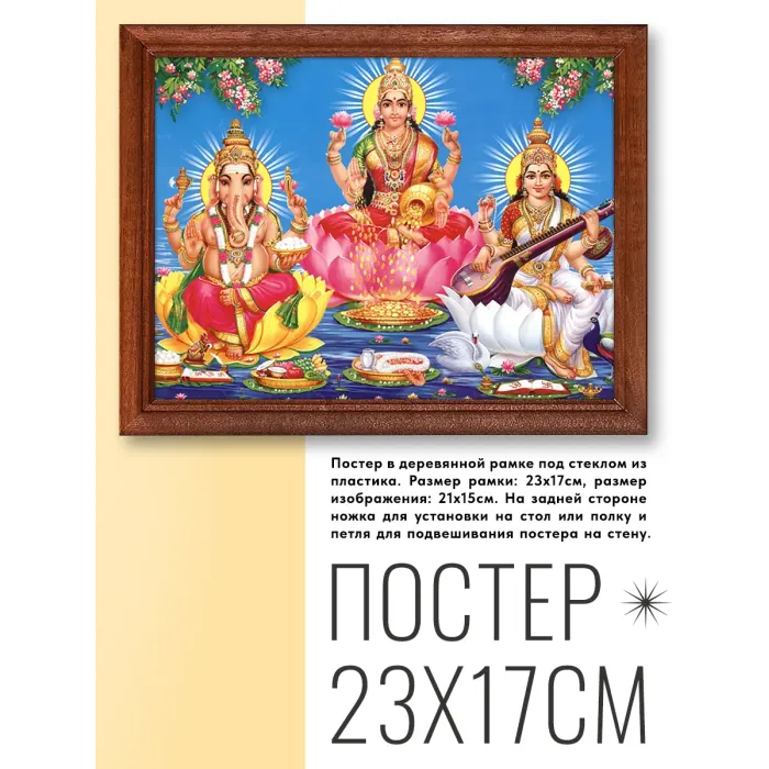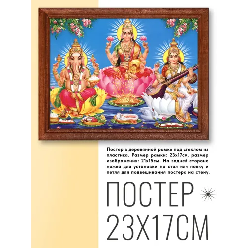 Постер в рамке 22х17см Ганеша, Лакшми, Сарасвати POSG-0130