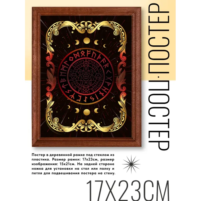 Постер в деревянной рамке с пластиковым стеклом для настольной установки или настенного крепления.