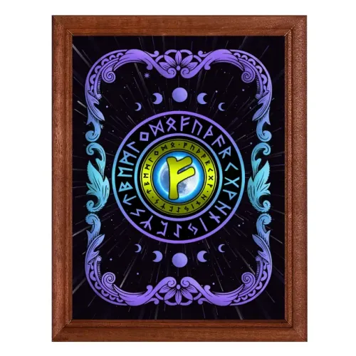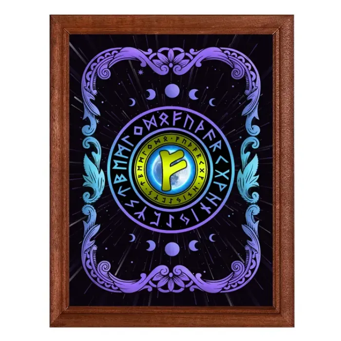 Постер в рамке с изображением руны Феху. Деревянная рама с пластиковым стеклом.