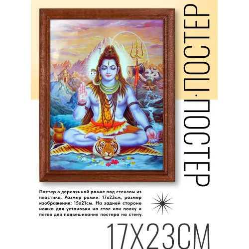 Постер в деревянной рамке с изображением Шивы — это стильный элемент декора, который привнесет атмосферу гармонии и умиротворения. Он идеально подходит для украшения салонов, магазинов, офисов, кафе и жилых помещений.