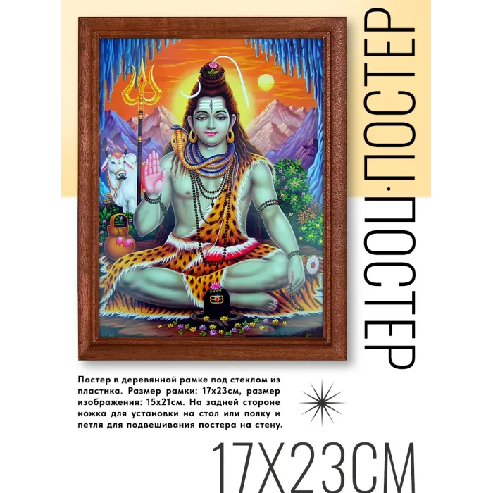 Постер в рамке с изображением Шивы для интерьерного декора. Рама деревянная под пластиковым стеклом.