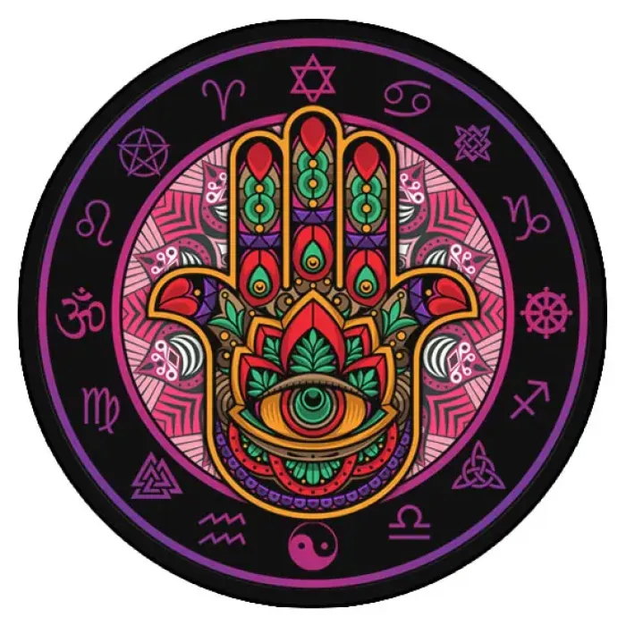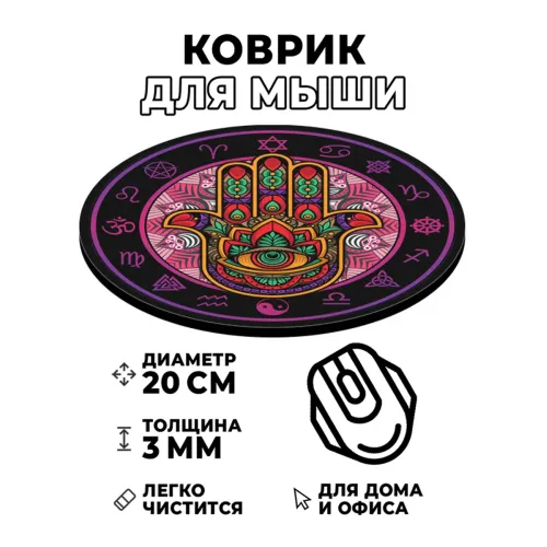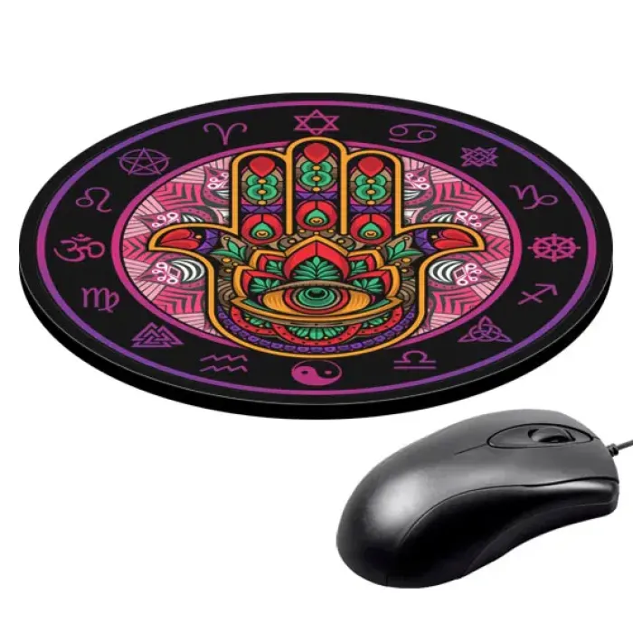 Коврик для компьютерной мыши круглой формы с изображением Хамсы. Диаметр 20 см, толщина 3 мм.