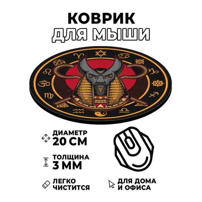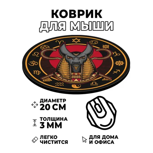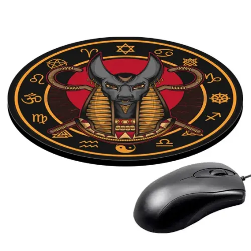 Коврик для мыши с изображением Анубиса — это не только практичный аксессуар, но и стильный элемент декора рабочего места. Он привносит в атмосферу загадочность и величие древнеегипетской культуры.
