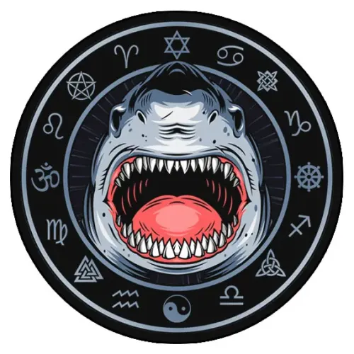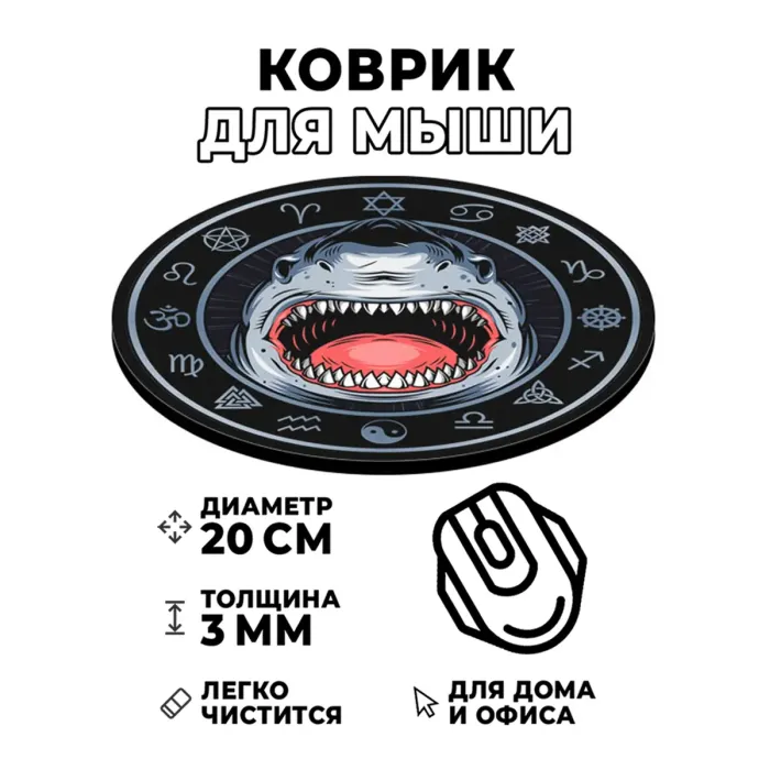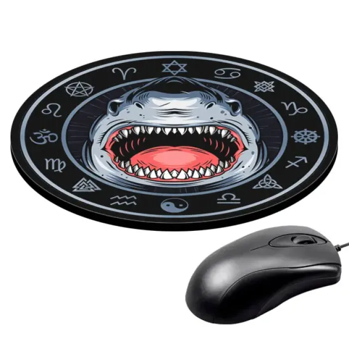 Коврик для компьютерной мыши круглой формы с изображением акулы.