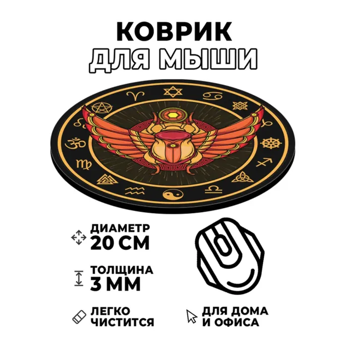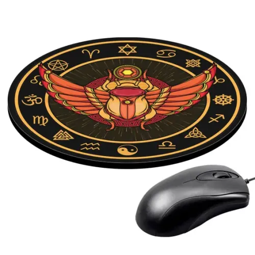 Коврик для компьютерной мыши круглой формы с изображением скарабея.