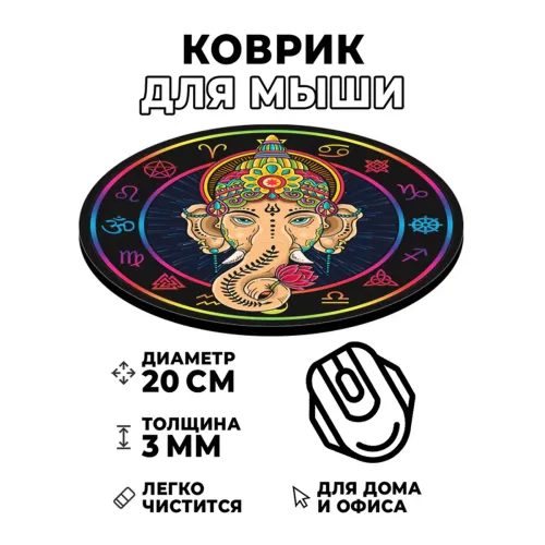 Коврик для компьютерной мыши с изображением Ганеши — символа удачи и благополучия. Этот стильный аксессуар не только украсит рабочее место, но и создаст атмосферу вдохновения.