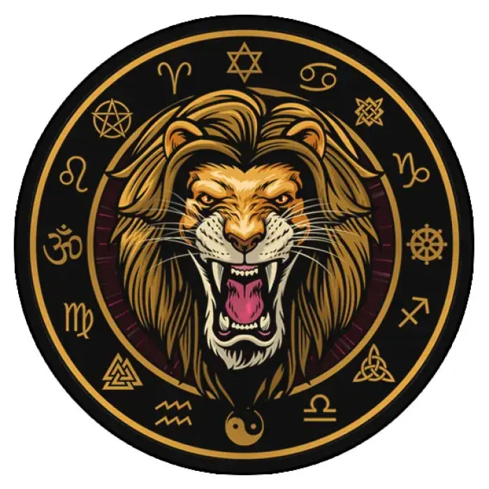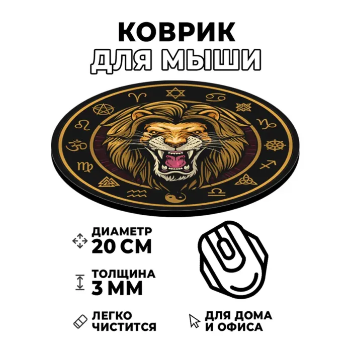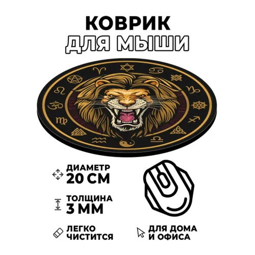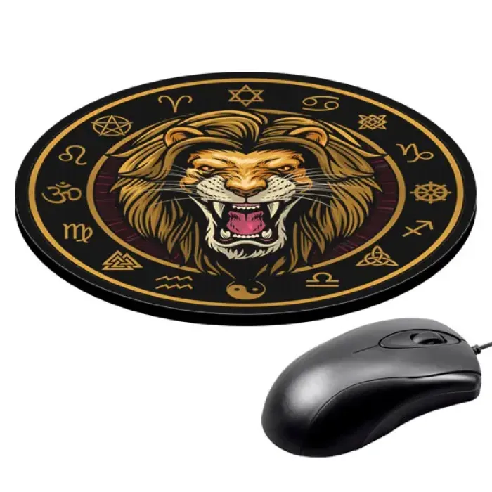 Коврик для компьютерной мыши круглой формы с изображением льва.