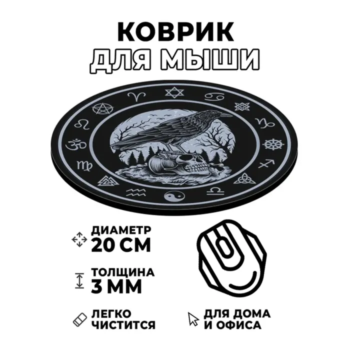 Коврик для мыши Ворон на черепе, d.20см KM0025